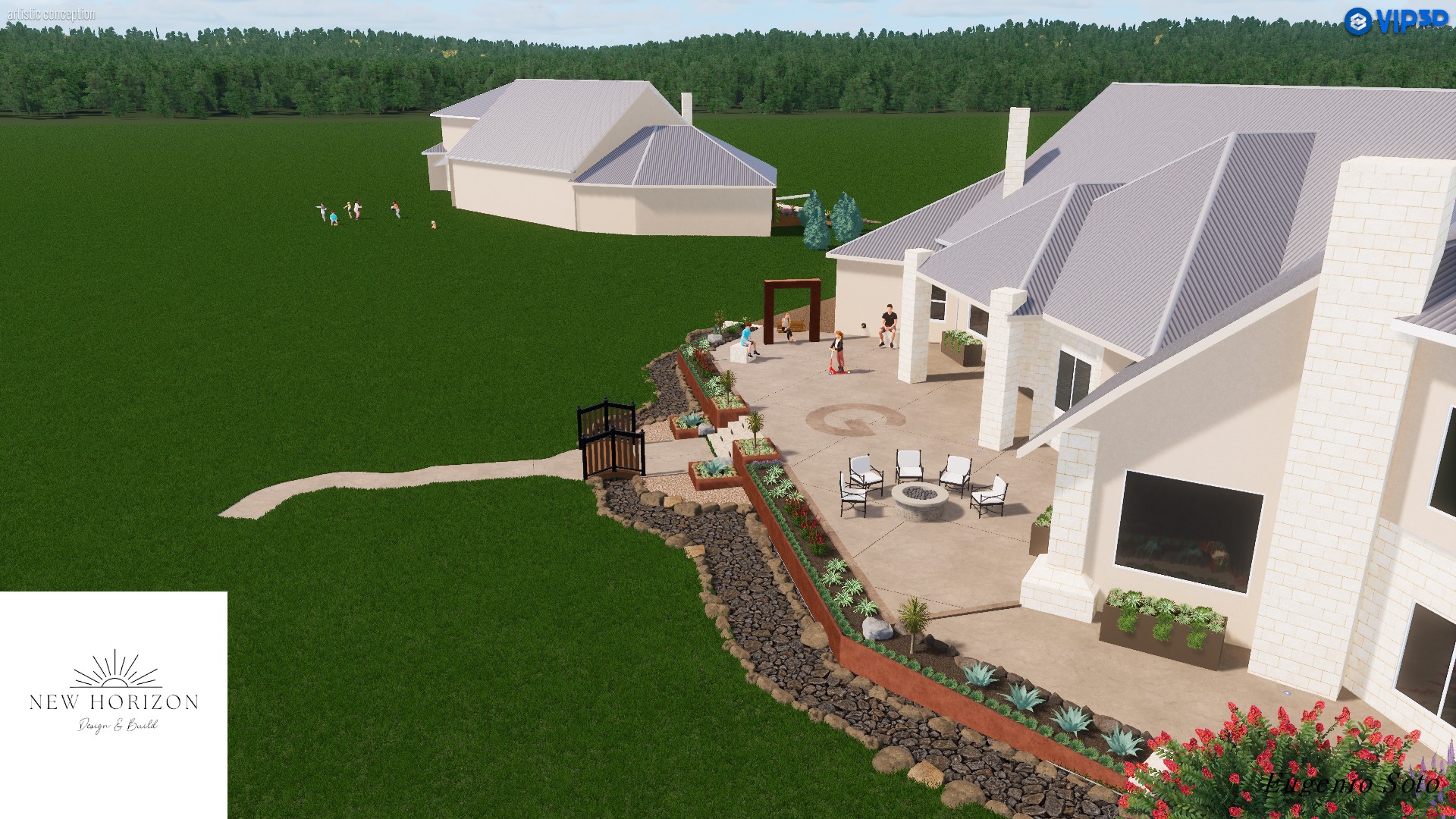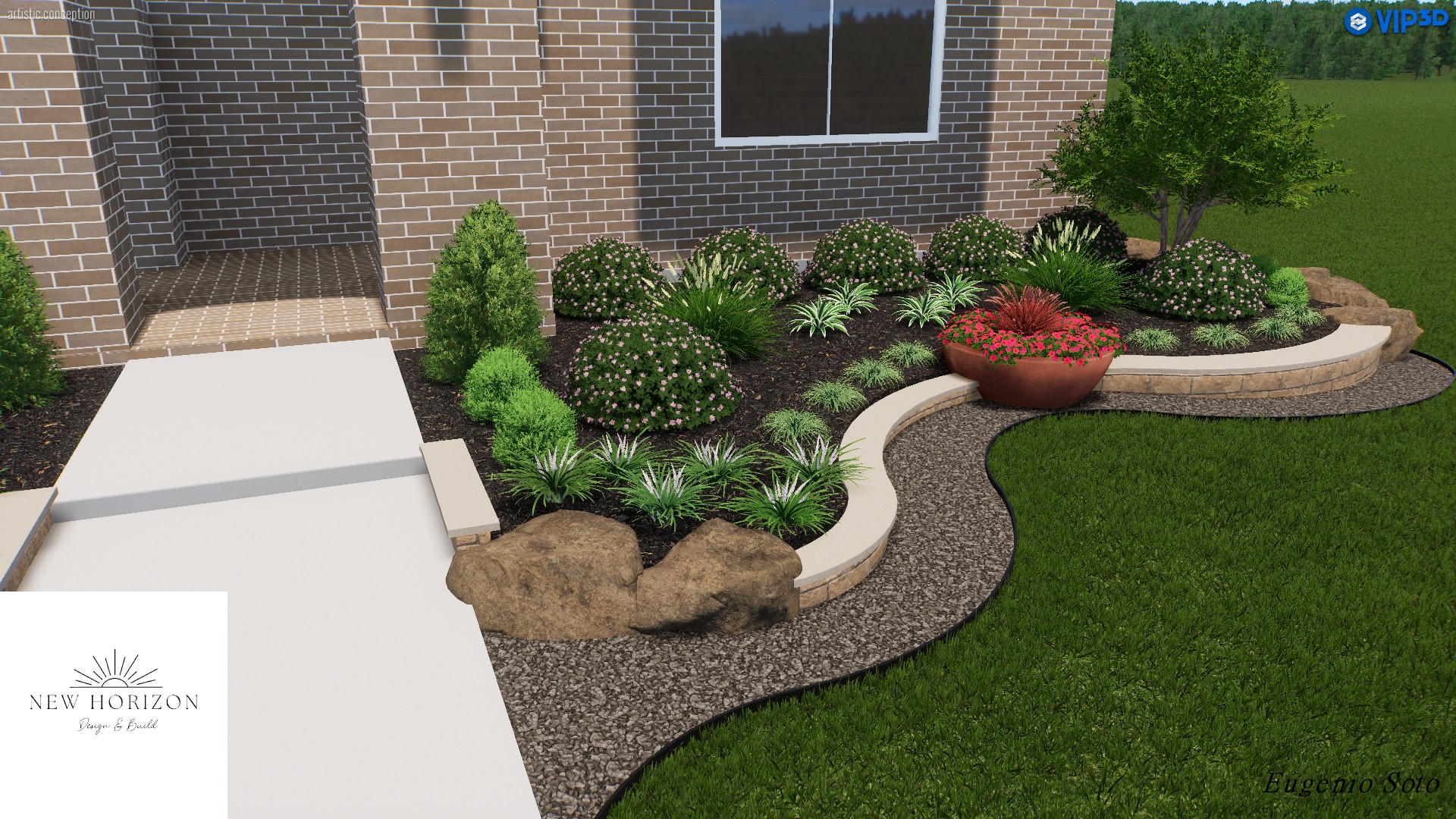 New Horizon Design Build offers 2D and 3D design services. Our team of designers will work closely with you to understand your needs, preferences, and vision for your landscape, and we’ll use that information to create a custom design that meets your unique requirements. Our designs incorporate elements such as hardscaping, plantings, lighting, irrigation, and more, to create a cohesive and balanced outdoor environment. We’ll also consider factors like sun exposure, wind patterns, and existing topography to ensure that your design is both beautiful and practical. Whether you’re starting from scratch or renovating an existing landscape, our design team has the expertise and experience to help you bring your vision to life.